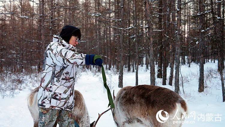 产业的发展,让这份羁绊有了更广阔的承载。夏季,刘刚将体态健美的公鹿领到敖鲁古雅景区,供游客观赏、喂食,游客们也可以在景区内制作桦树皮画、缝制鄂温克族太阳花配饰,在与驯鹿的亲密接触中,感受鄂温克族的传统文化;冬季,他将驯鹿租赁到武汉、宜昌等地的滑雪场,让驯鹿跨越大江大河,成为民族文化的“移动名片”。“租鹿的同时,我会派本民族的年轻人随行,既照顾驯鹿,也向外界讲述我们的故事。”刘刚说,看着驯鹿被越来越多人喜爱,看着鄂温克族文化被广泛传播,他觉得所有的辛苦都值得。