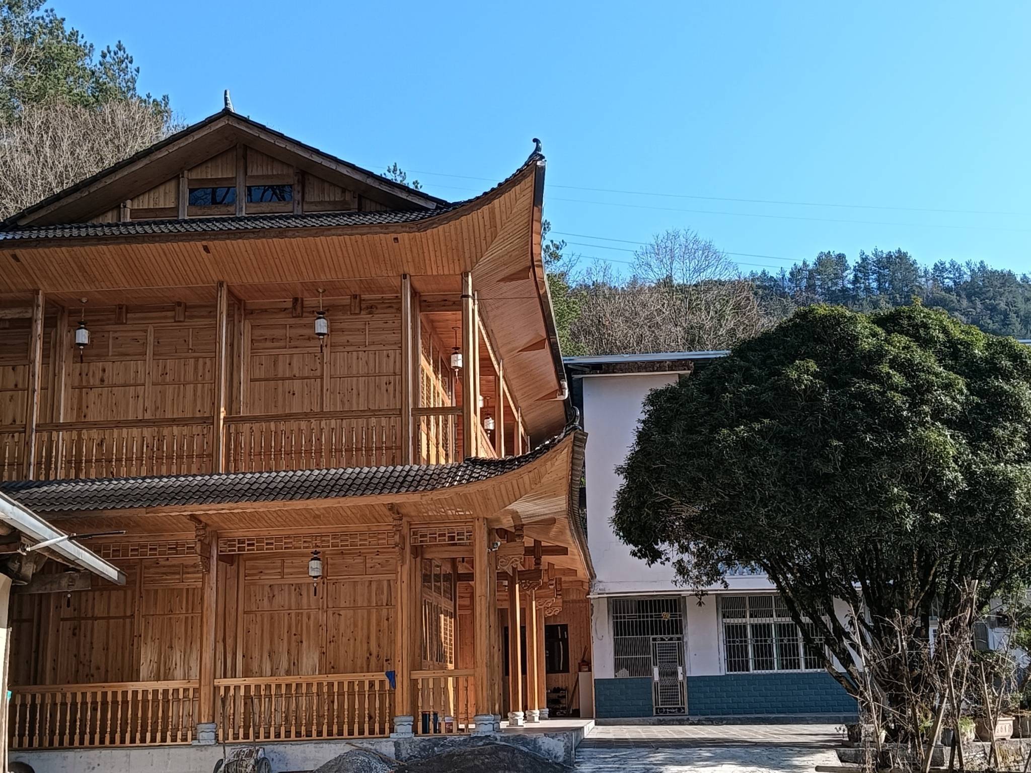 在吊脚楼木房建造领域,王育廷更是把技艺发挥到了极致。他打造的木房子,雕梁画栋、工艺考究,围栏、檐楣在沿袭传统的万字纹和祥云图案风格的基础上,加以花鸟图案相衬,每一刀、每一凿都藏着巧思。
